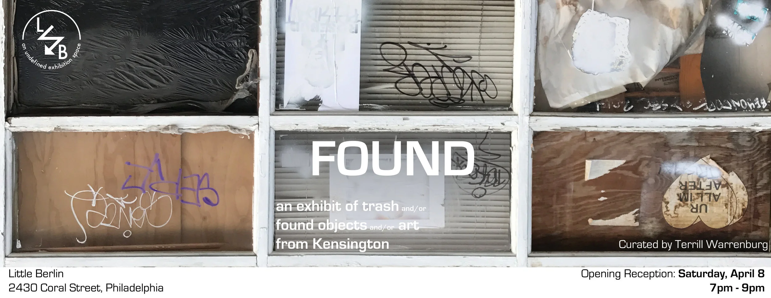 Little Berlin is pleased to present FOUND, an array of art, objects, sounds, materials, moments and installations generated with found material from Kensington. The exhibition will run from April 8- 23rd with an opening reception on Saturday April 8th from 7-9pm.